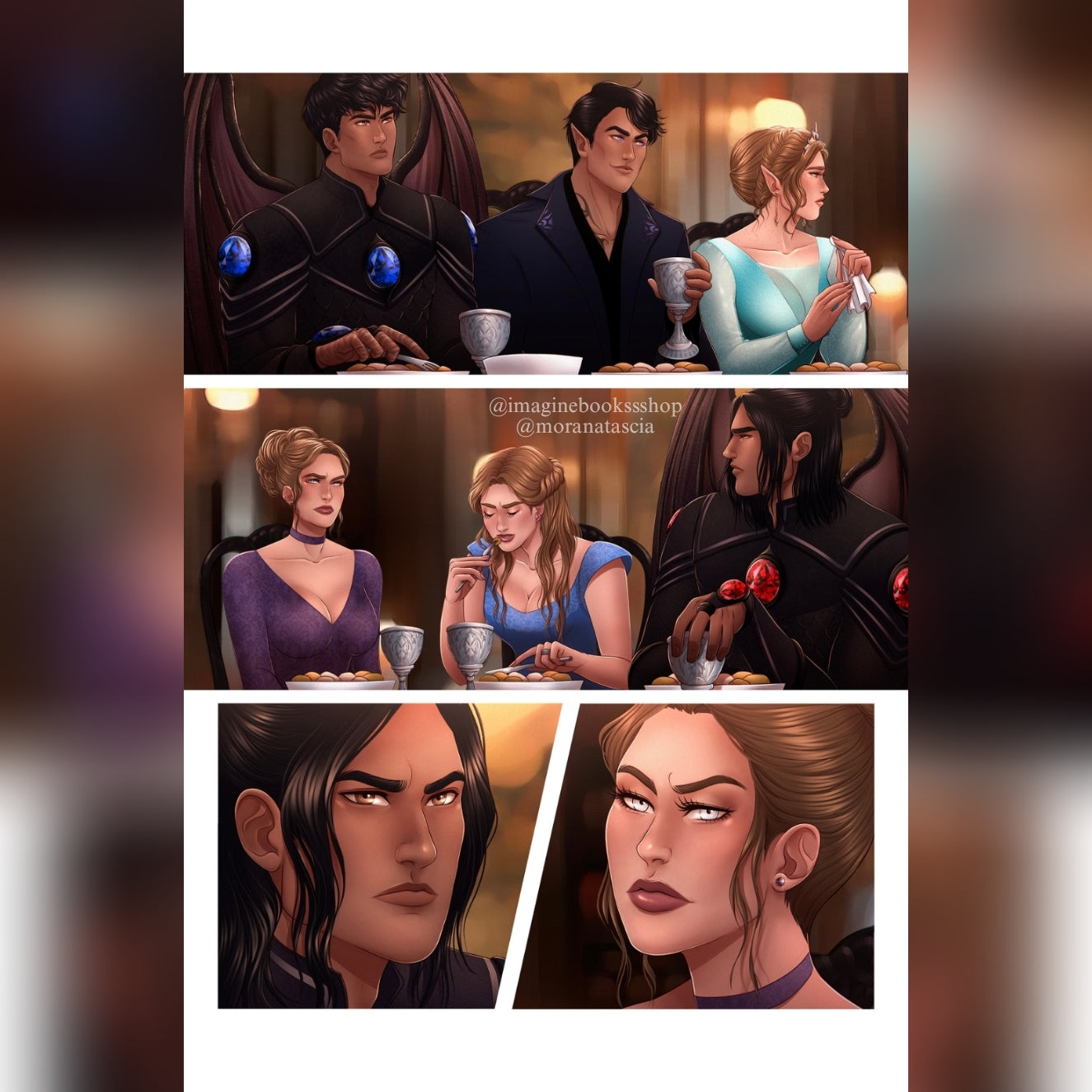 16 page overlays of 14 scenes from the book, A Court of Mist and Fury, by Sarah J. Maas, © 2015. Artwork by @moranatascia. Reprinted by permission of Writers House LLC acting as agent for the author.