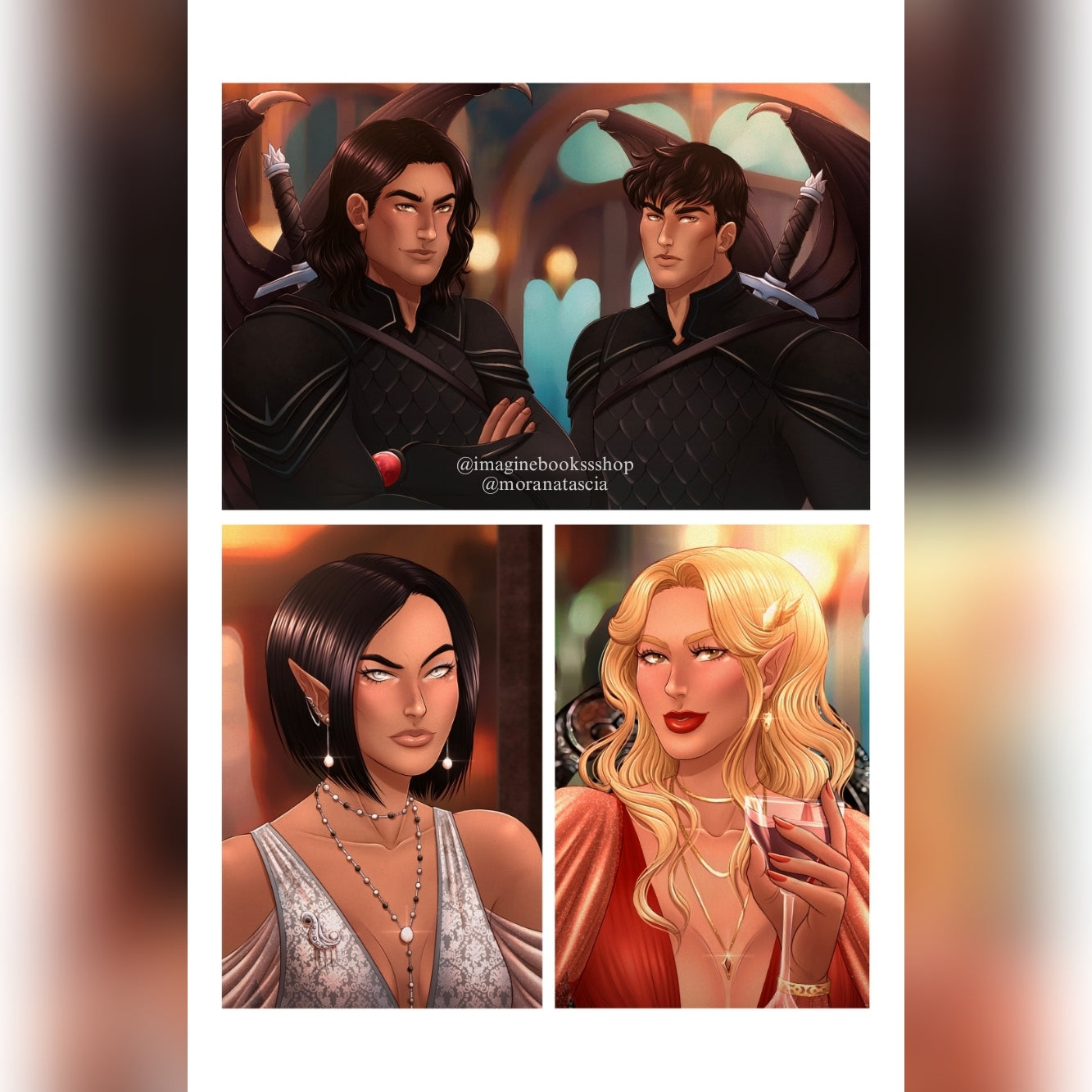 The art depicted on the products listed for sale is wholly original to me and has been approved by Sarah J. Maas for use on the products. Notwithstanding such approval, Sarah J. Maas has not collaborated with me in any way in the creation of the art, and the traits of any characters depicted in the art is in no way based on any foreknowledge by me of the traits of any characters in future books by Sarah J. Maas.