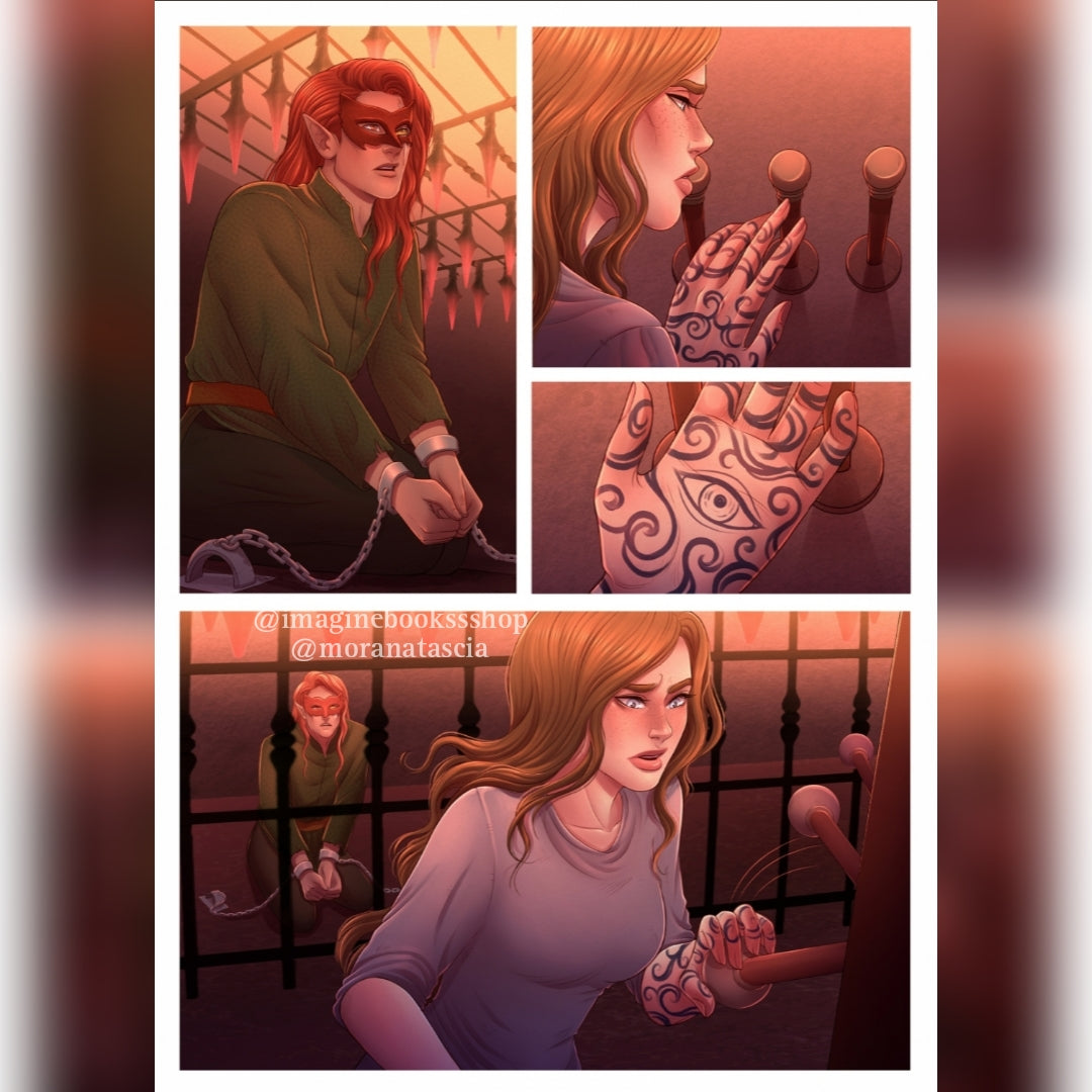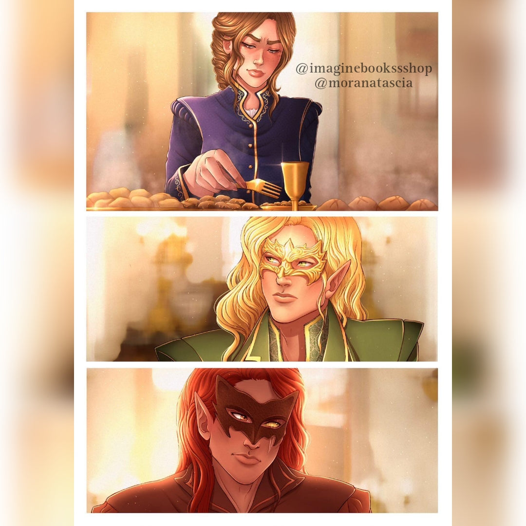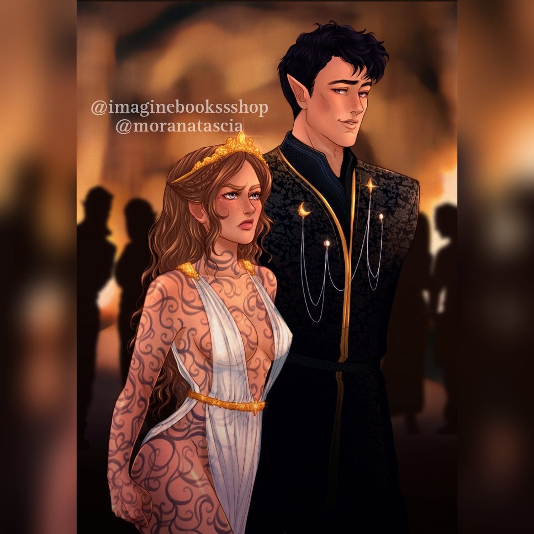 The art depicted on the products listed for sale is wholly original to me and has been approved by Sarah J. Maas for use on the products. Notwithstanding such approval, Sarah J. Maas has not collaborated with me in any way in the creation of the art, and the traits of any characters depicted in the art is in no way based on any foreknowledge by me of the traits of any characters in future books by Sarah J. Maas.