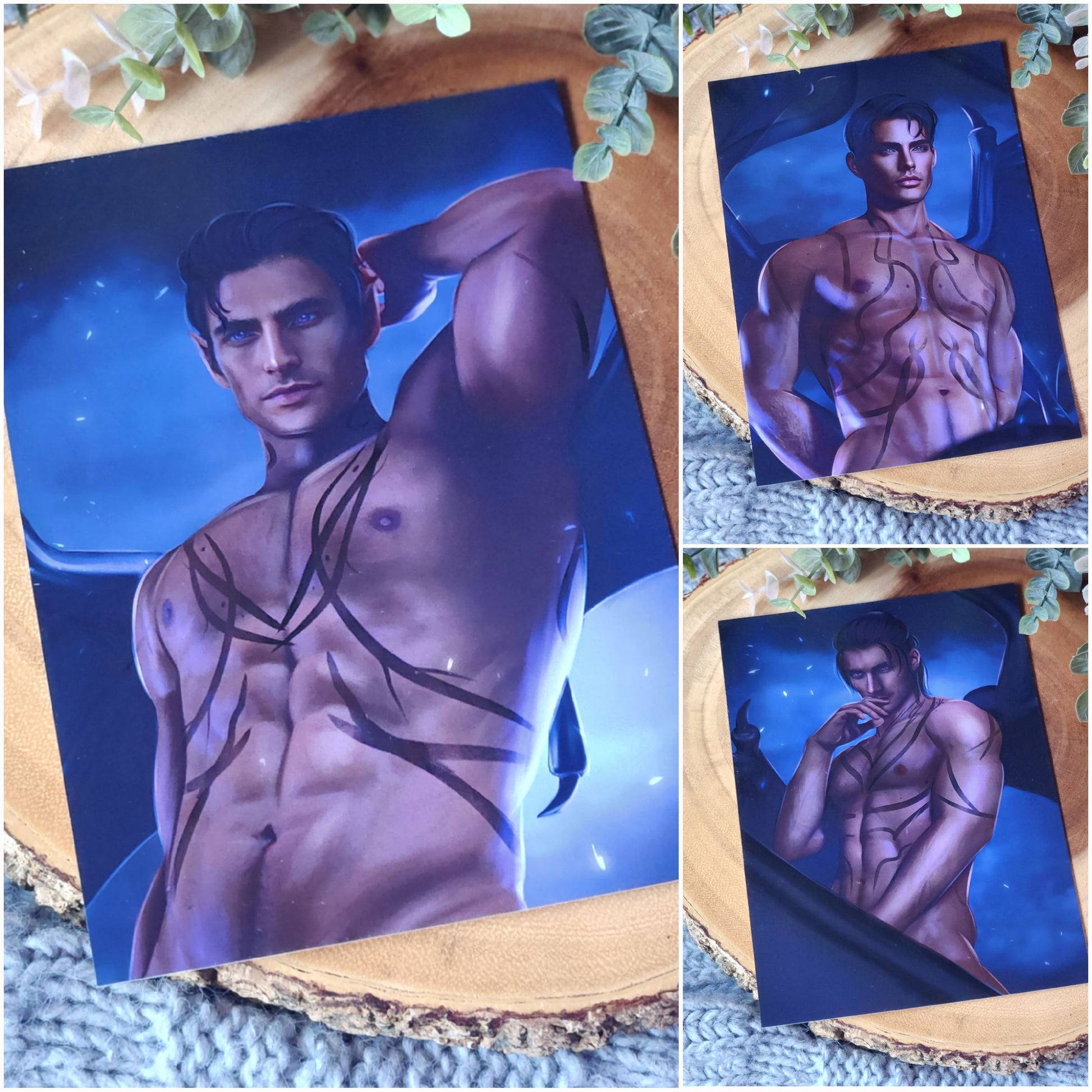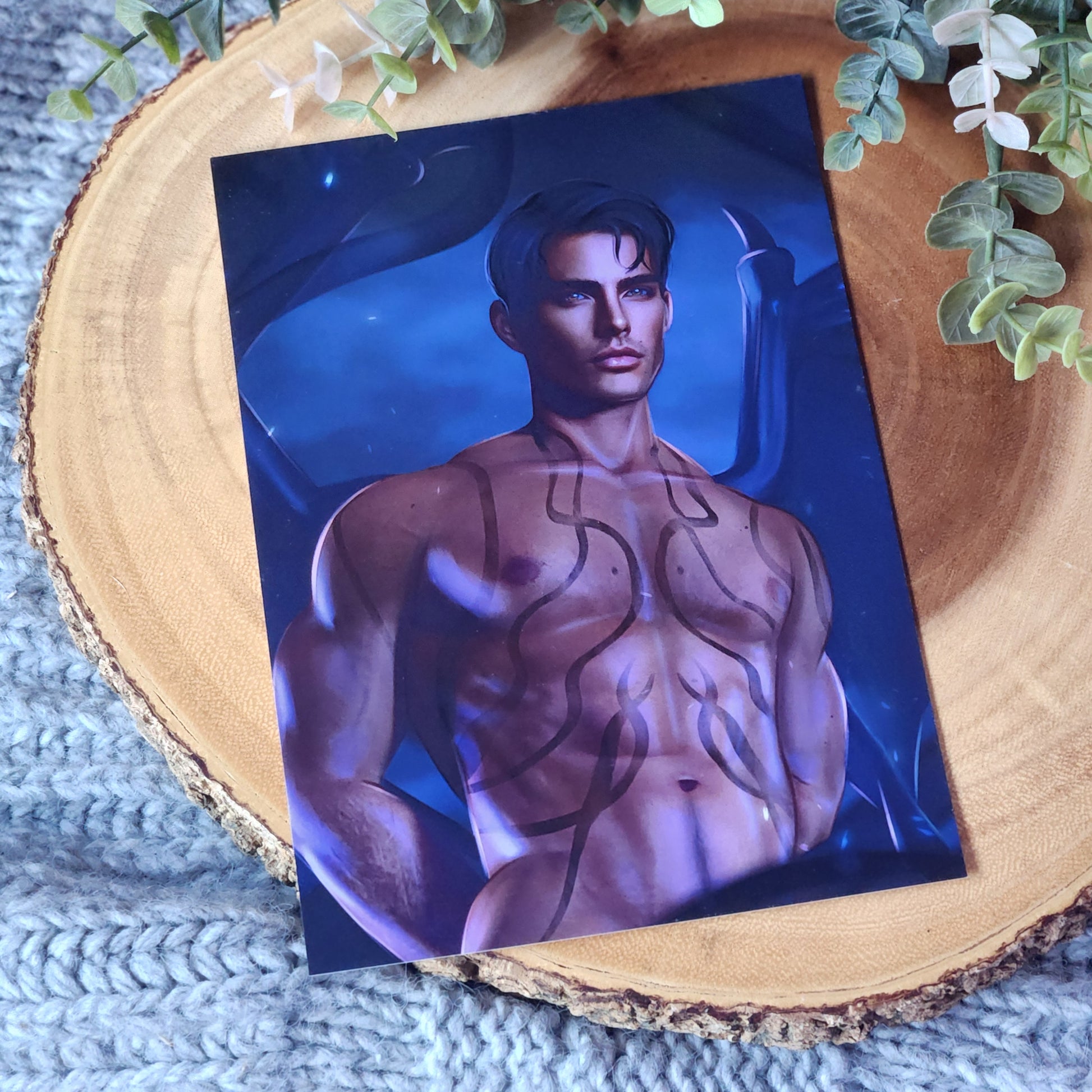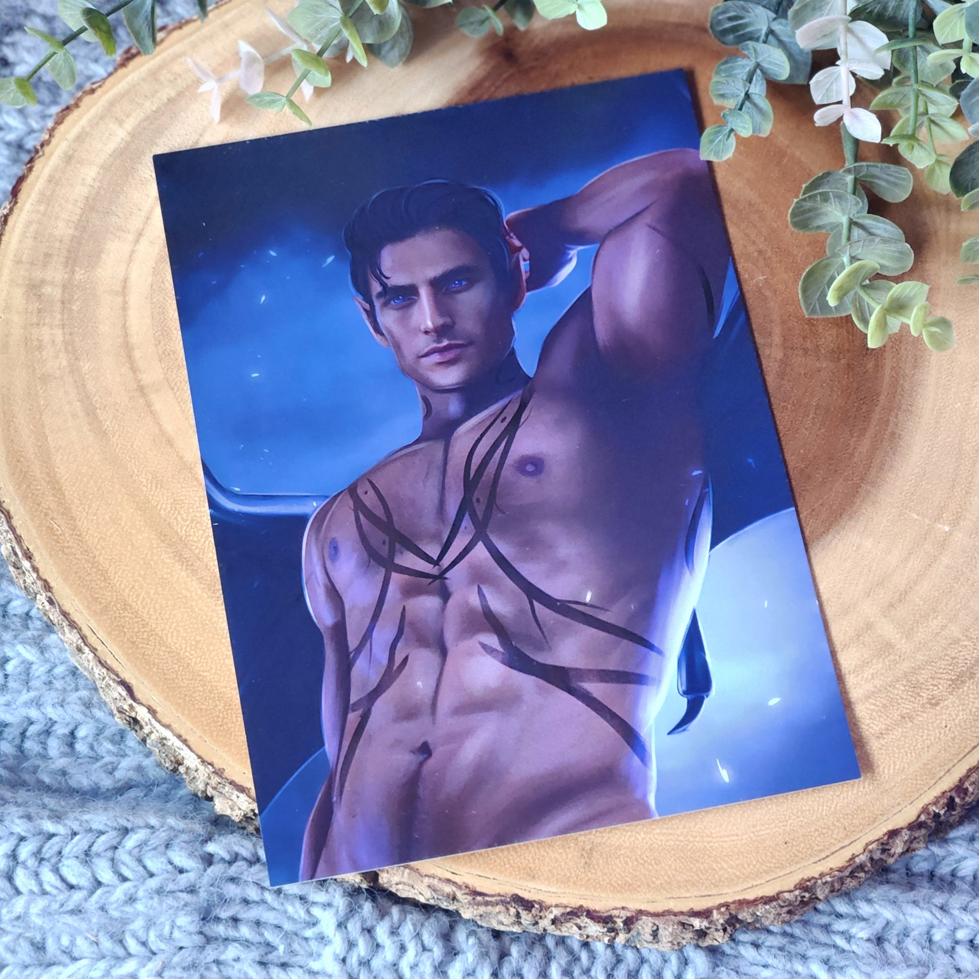 5x7 art print of Rhysand, Cassian and Azriel from the book series From A Court of Thorns and Roses, by Sarah J. Maas, © 2015. Artwork by @tonyviento. Reprinted by permission of Writers House LLC acting as agent for the author.