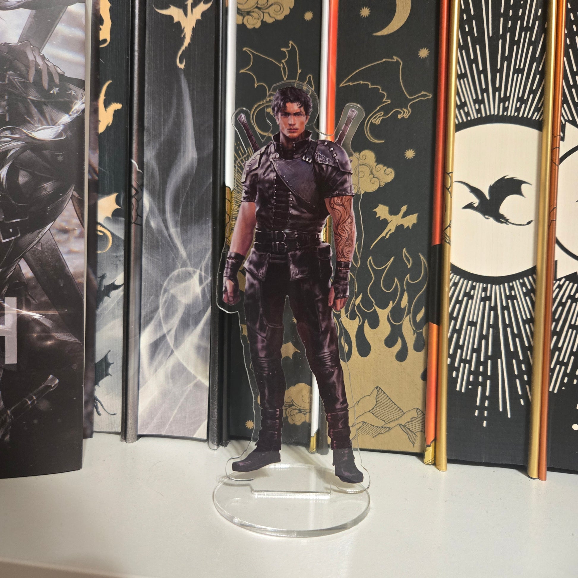 Acrylic Standees with artwork inspired by the book FOURTH WING by Rebecca Yarros, published by Red Tower Books, an imprint of Entangled Publishing, LLC. Copyright 2023 by Rebecca Yarros. Artwork by Imagine Books Shop. Illustrated by Palamarchuk Mikhail.
