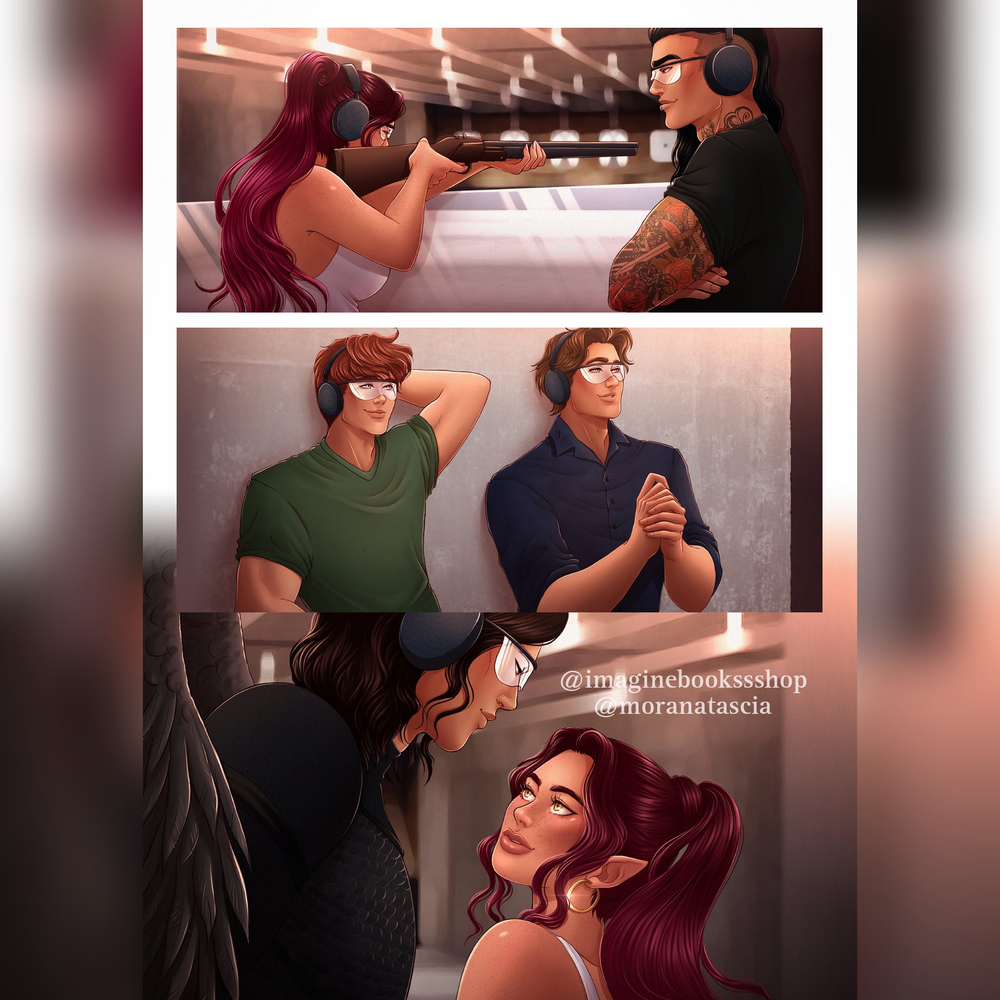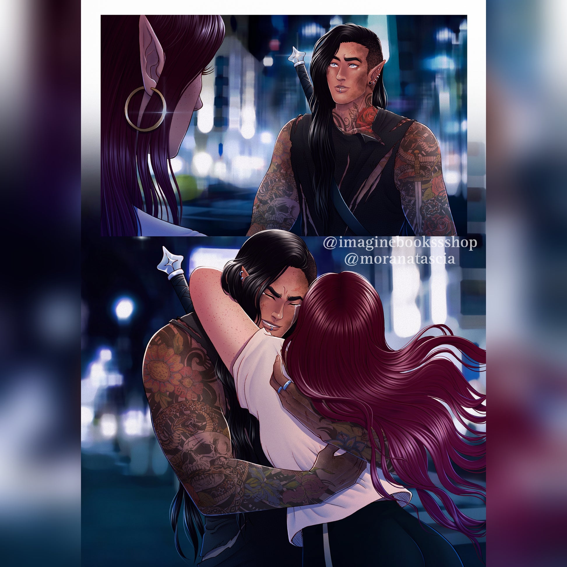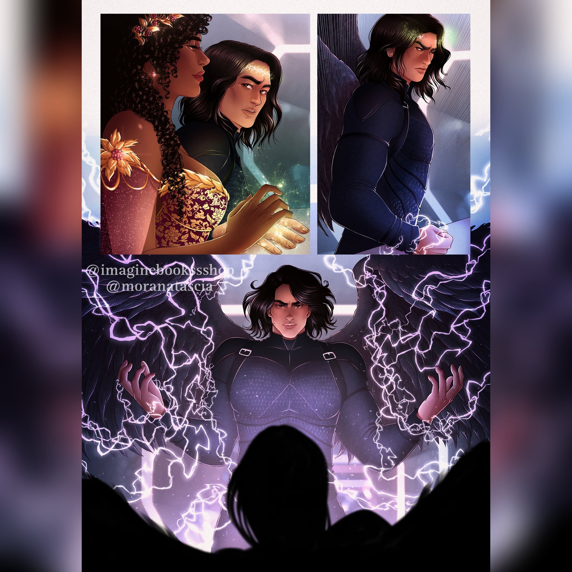 14 page overlays from the book series From Crescent City, by Sarah J. Maas, © 2015. Artwork by @moranatascia. Reprinted by permission of Writers House LLC acting as agent for the author.