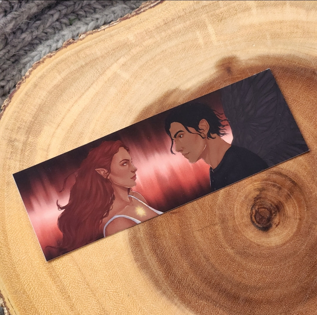 Bookmark inspired by Hunt and Bryce from the book series Crescent City, by Sarah J. Maas, © 2015. Artwork by @cir.arts. Reprinted by permission of Writers House LLC acting as agent for the author.