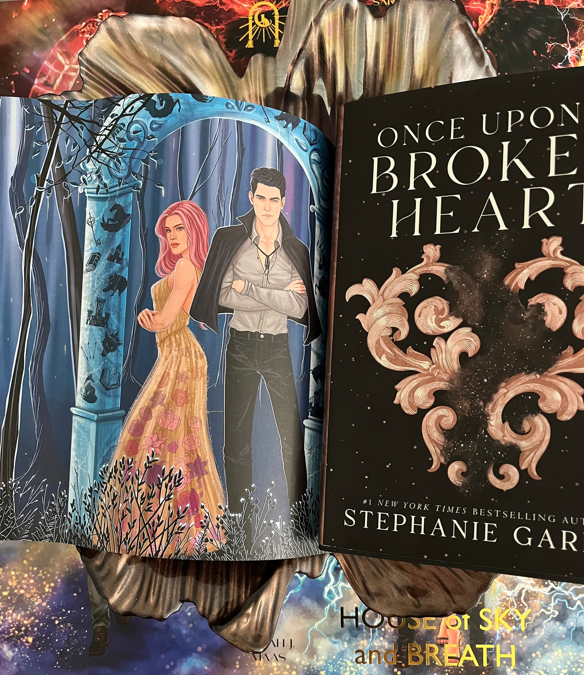 Dust jacket inspired by the book Once Upon a Broken Heart. This dust jacket is sized for the USA version of the book. Front cover illustration is done by @bethgilbert_art and the reverse illustration is by @bottle_of_rum_art.
