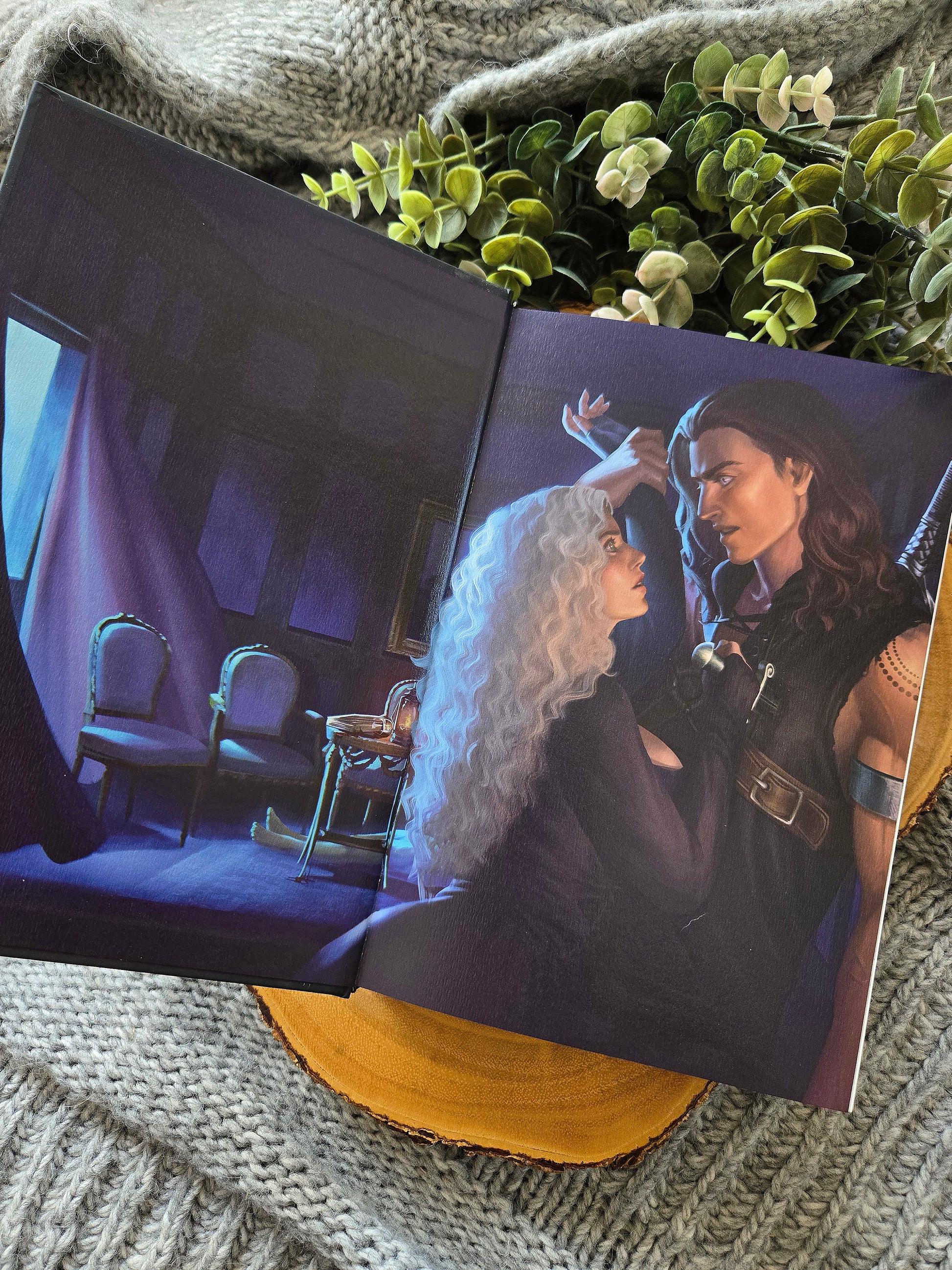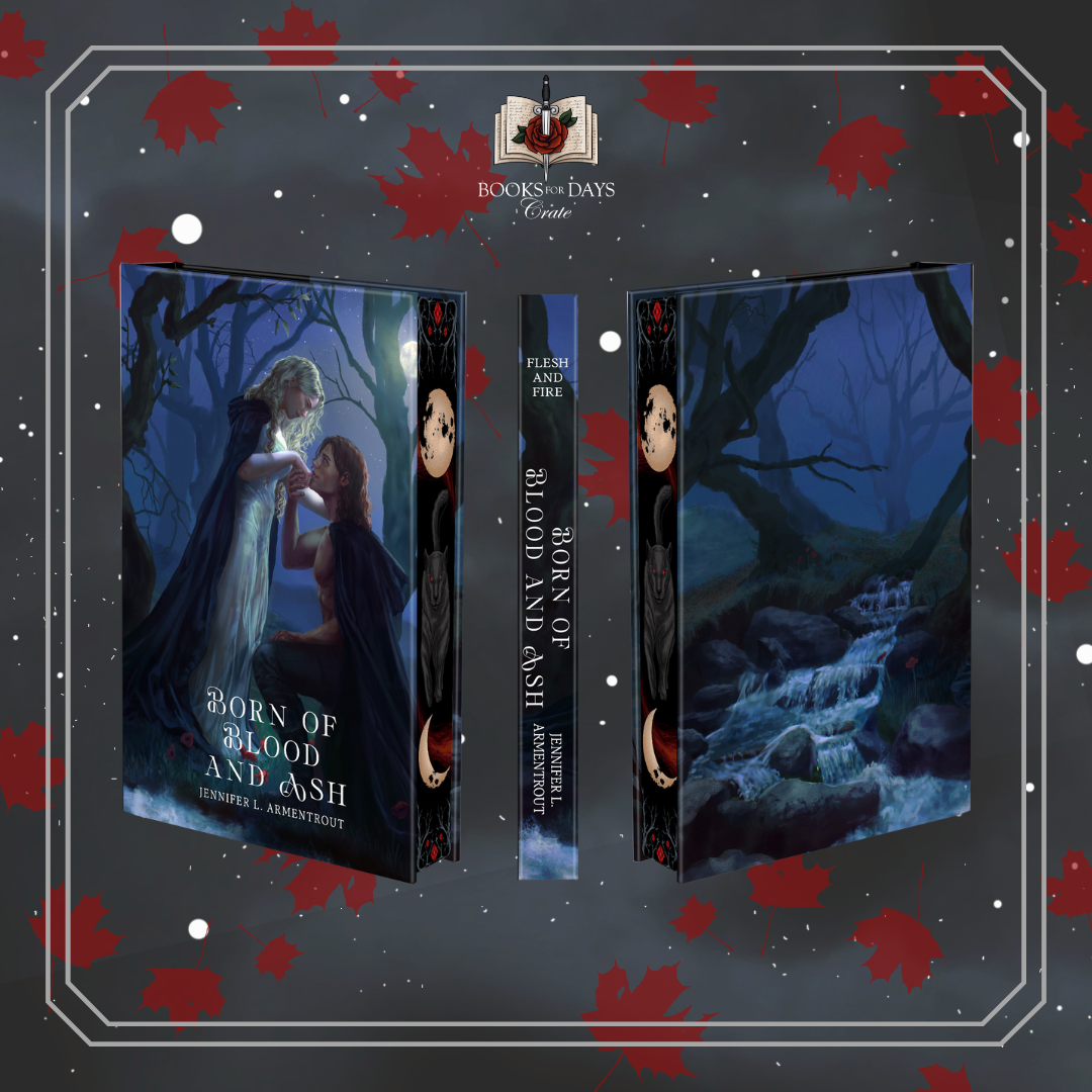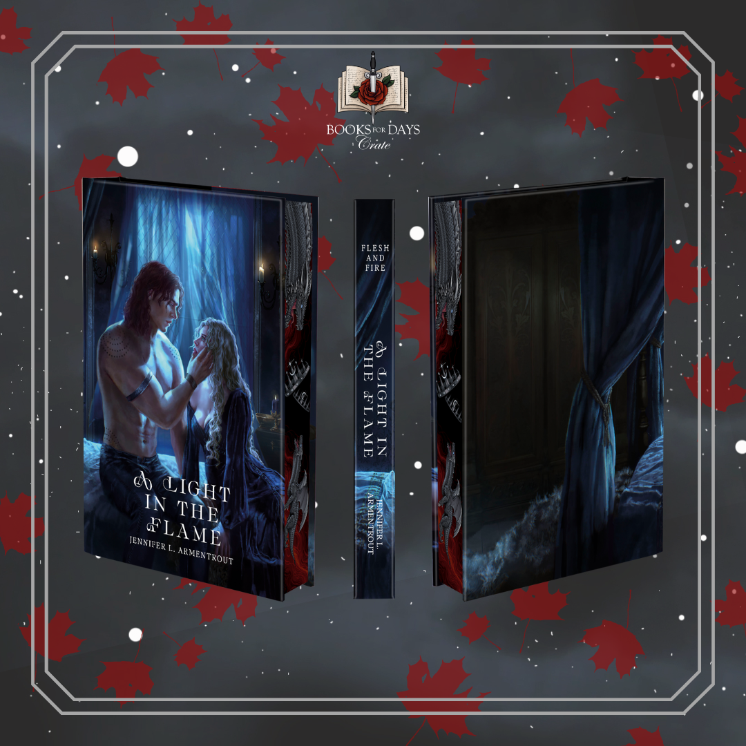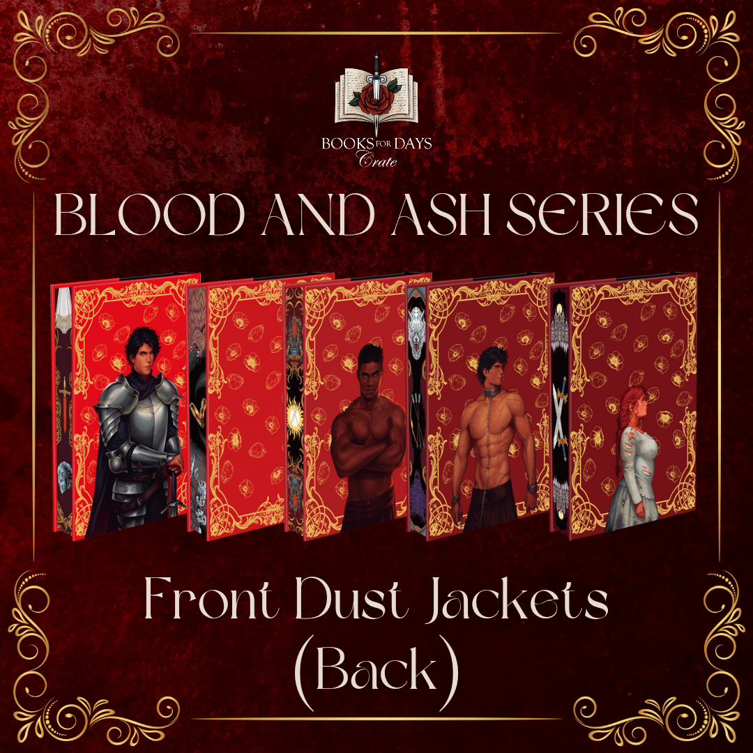 - For the front dust jacket side, here are our Blood and Ash set (last photos) so you can see what they will vibe with. We're also revealing our back cover art for A Light in the Flame, Nektas and Jadis! (Jadis eyes will be a golden color, not red.) The background color will go from grey to black.