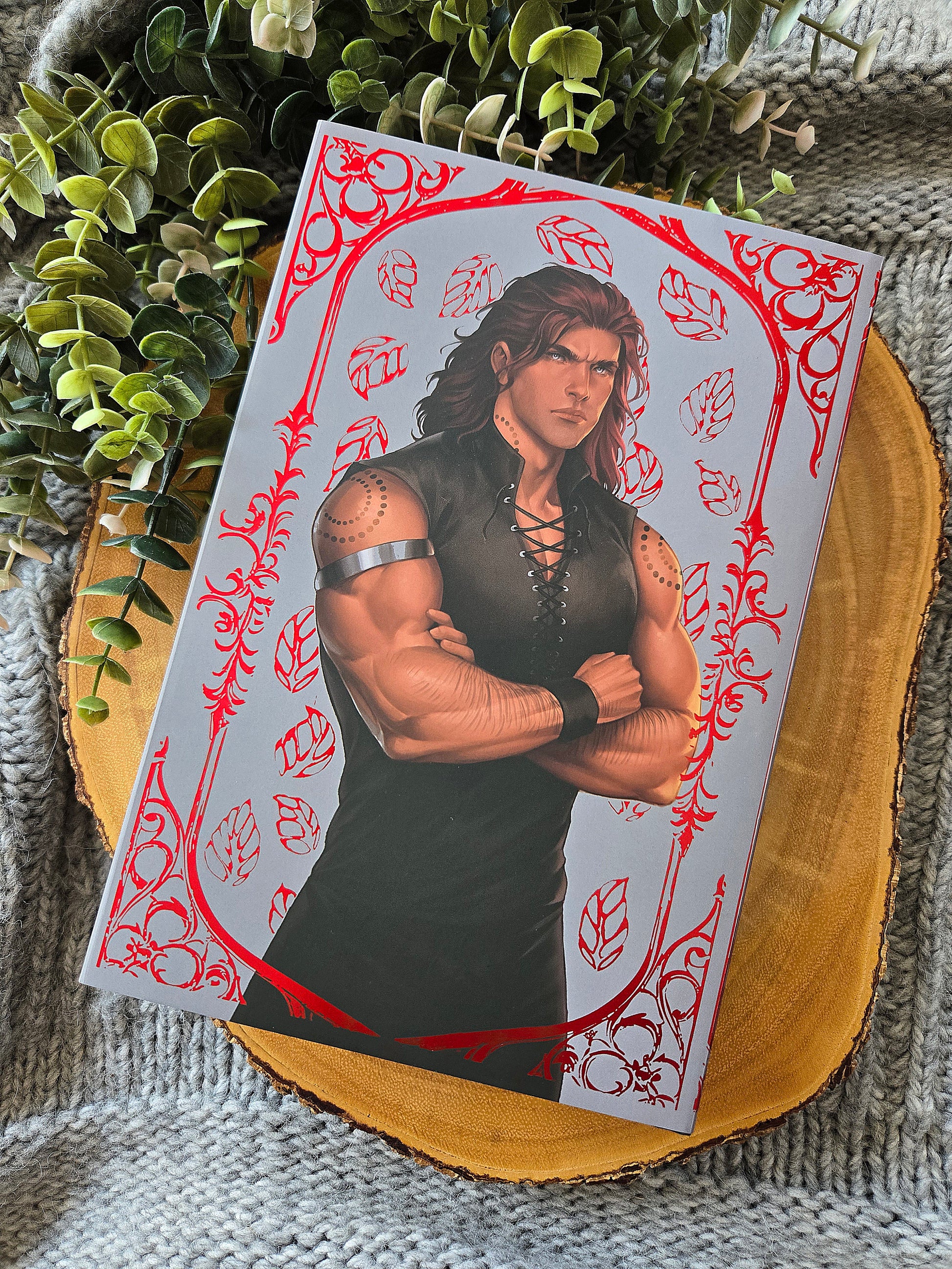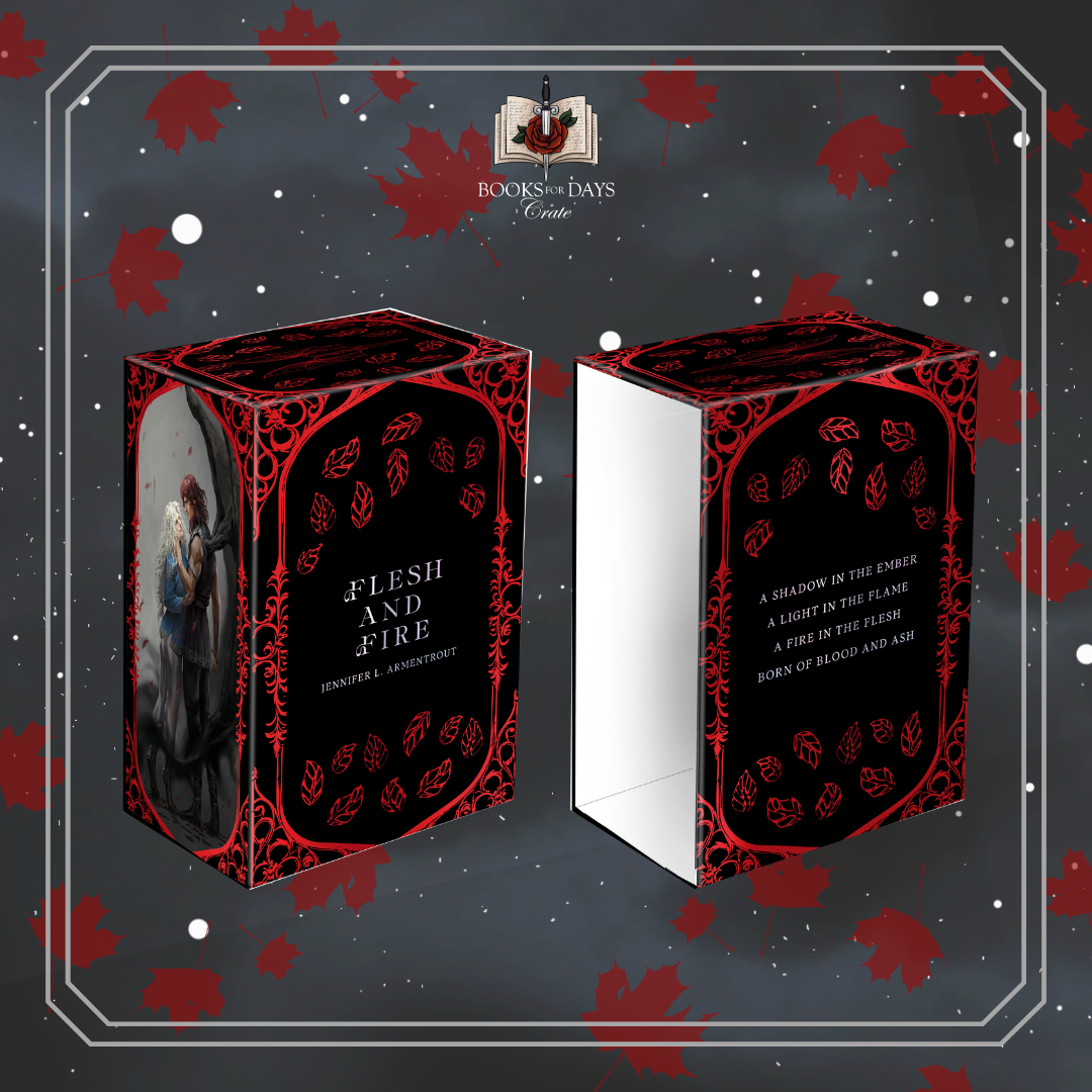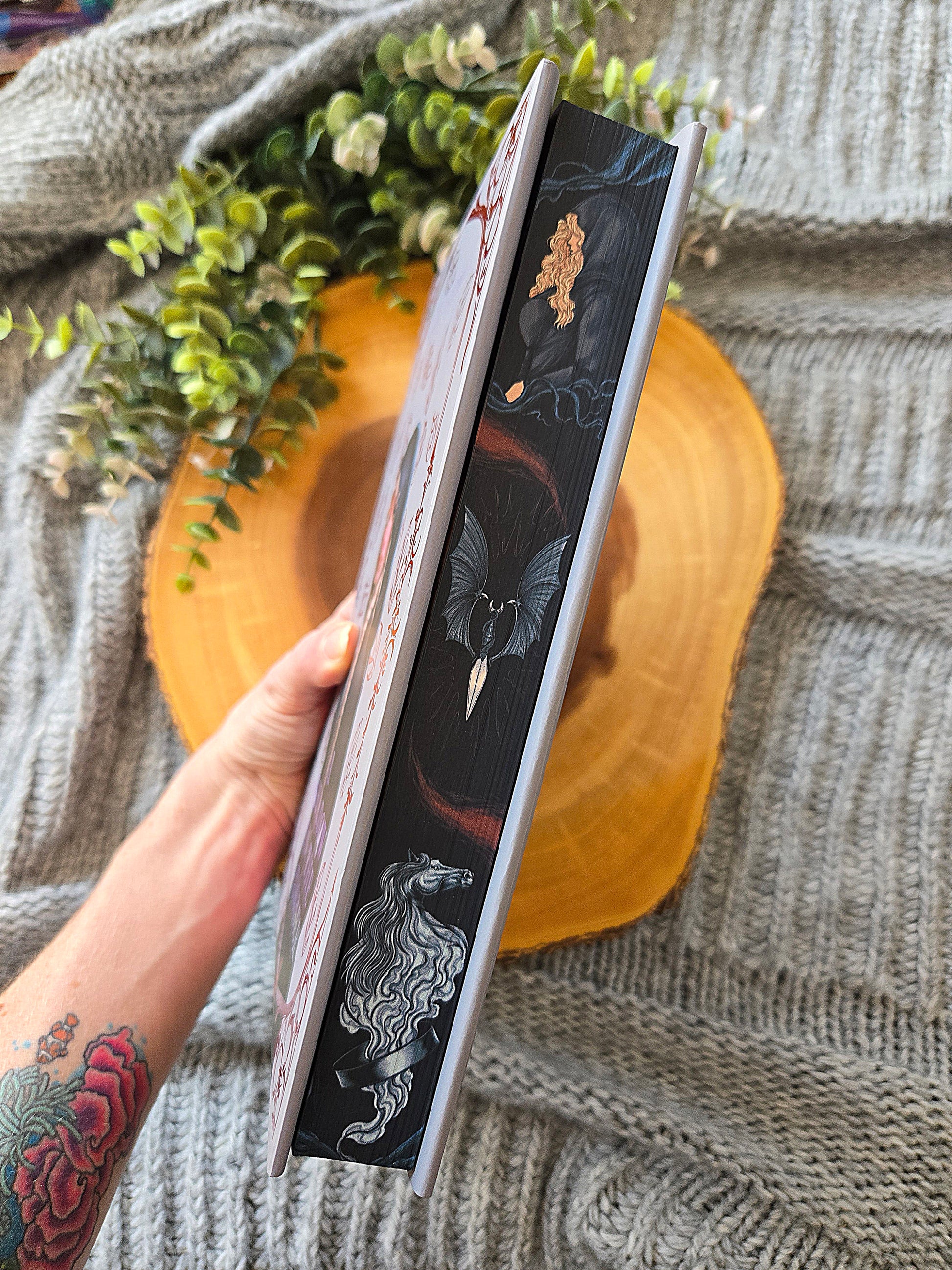 - For the front dust jacket side, here are our Blood and Ash set (last photos) so you can see what they will vibe with. We're also revealing our back cover art for A Light in the Flame, Nektas and Jadis! (Jadis eyes will be a golden color, not red.) The background color will go from grey to black.
