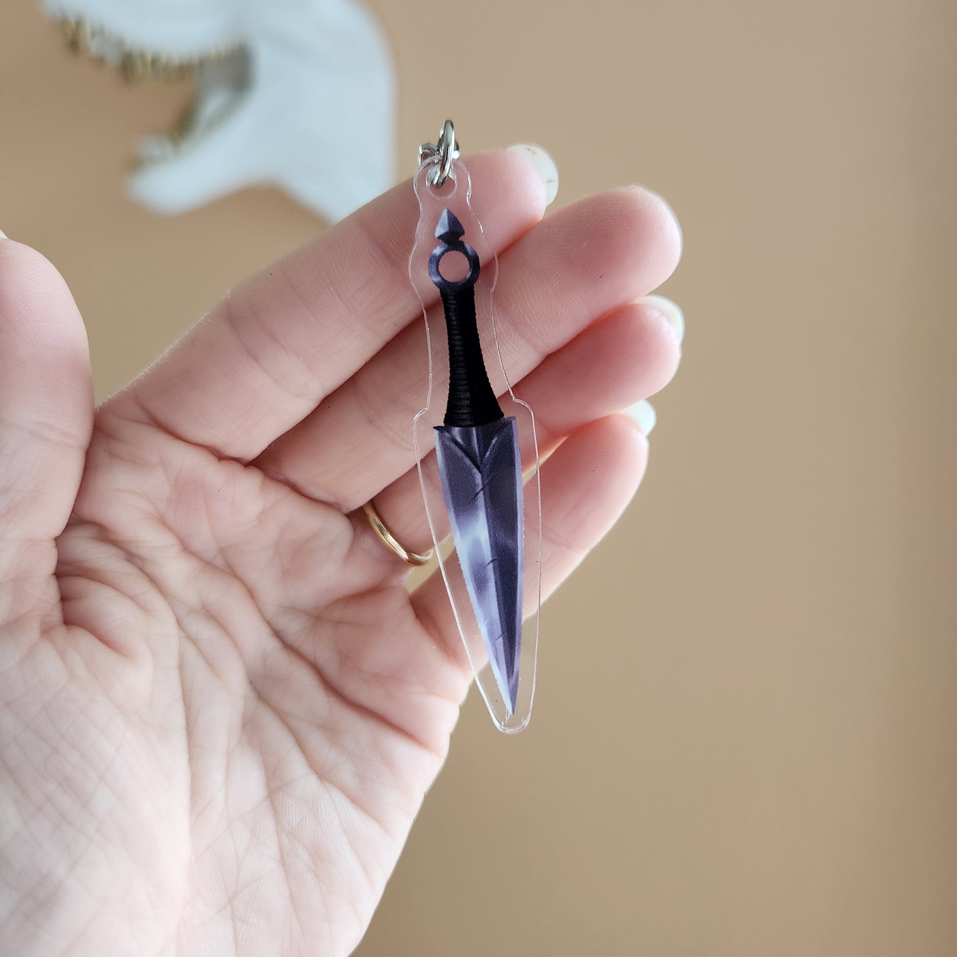 Keychain replica of Violet's dagger, inspired by the book FOURTH WING by Rebecca Yarros, published by Red Tower Books, an imprint of Entangled Publishing, LLC. Copyright 2023 by Rebecca Yarros. Artwork for Imagine Books Shop. Illustrated by @neonlaboratory.