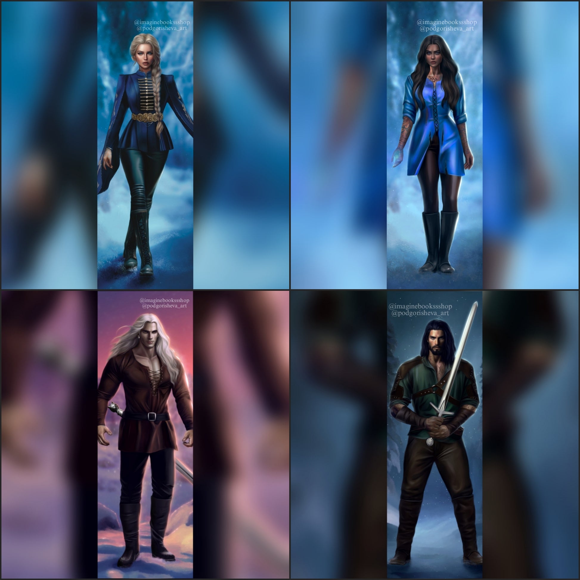 Bookmarks of Alexus, Neri, Nephele, and Raina from the Witch Walker series.