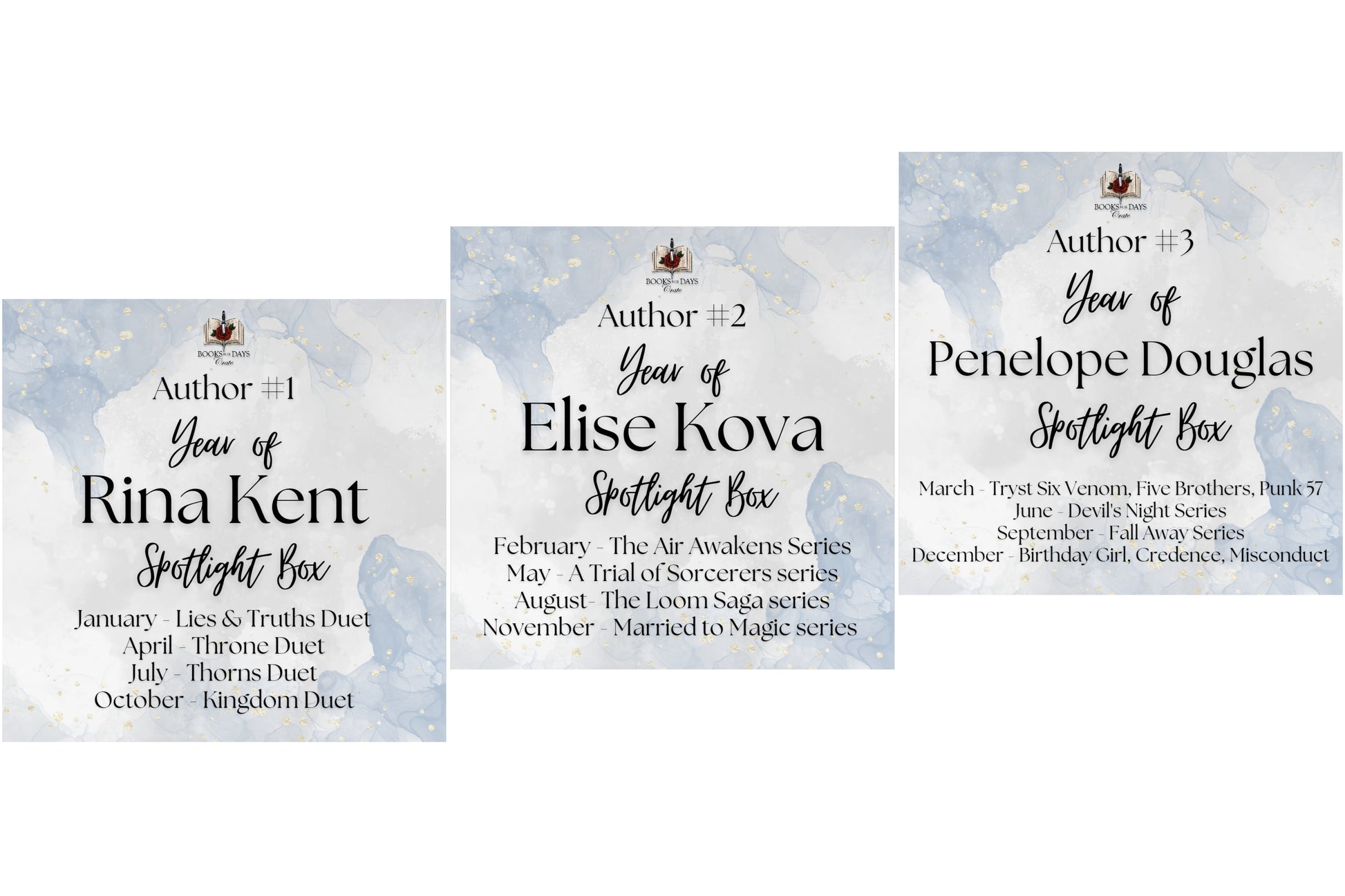Year of RINA KENT, ELISE KOVA, and PENELOPE DOUGLAS Author Spotlight Box